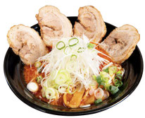 当店こだわりのとんこつスープをピリッとする中辛に。バーナーで炙られたチャーシューとネギの相性が抜群です。