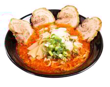 当店人気NO.2!うまからスープ。唐辛子は韓国から直入、自家製辛みそを使用しております。太麺160g、自家製炙りチャーシュー、独自の無極ダレ、メンマ、長ネギ、を使用しております!